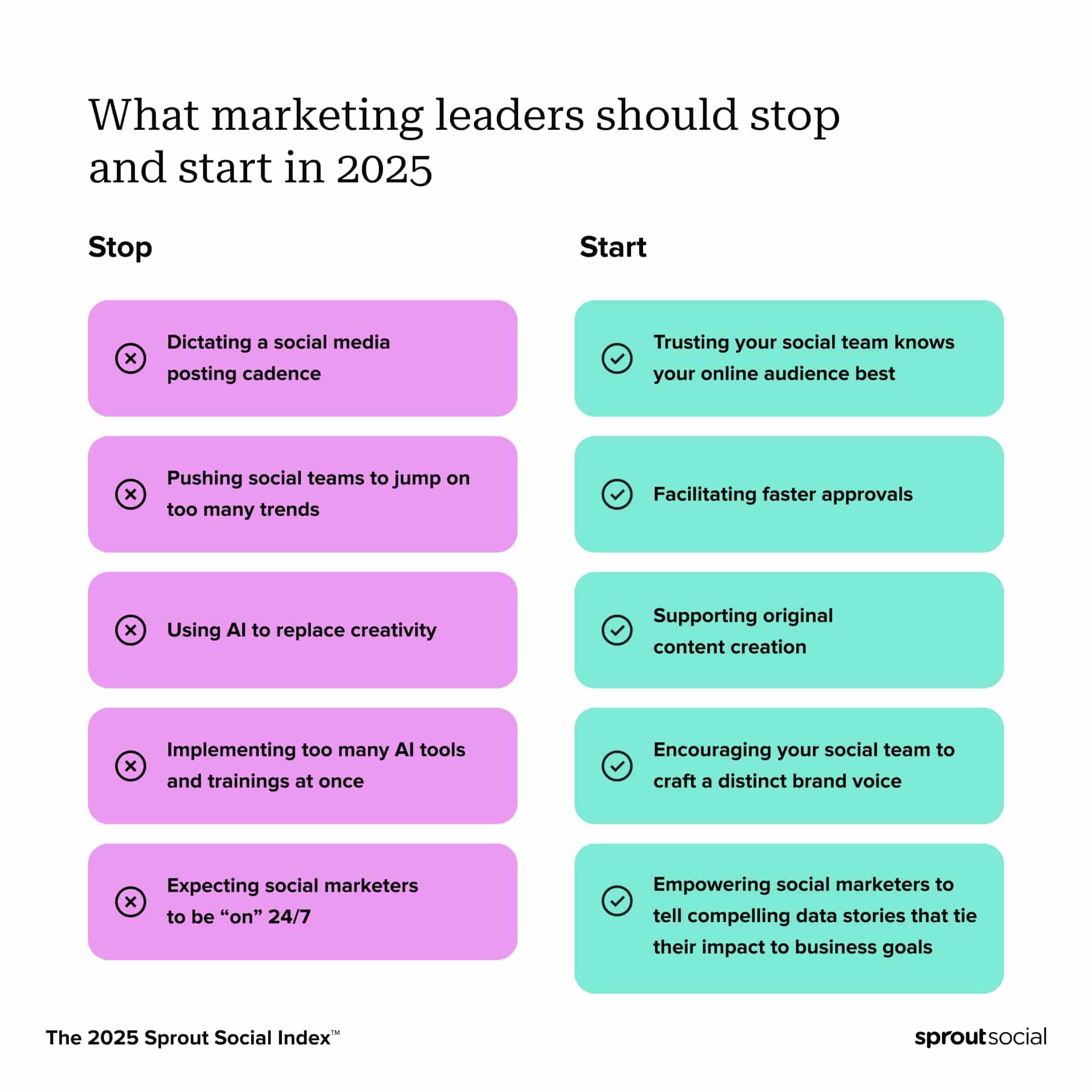 A la hora de decidir qué red social priorizar para su marca, hay que comenzar por determinar los objetivos, campañas, tipos de contenido y audiencia objetivo. Cada canal tiene sus propias ventajas y casos de uso, por lo que, partiendo de información basada en datos, podrá tomar decisiones con confianza sobre qué publicar y dónde. Según el 2025 Sprout Social Index™, los consumidores utilizan las redes sociales para mantenerse al día con las tendencias y los momentos culturales. Las marcas que comprenden a sus consumidores y sus comportamientos en las redes sociales prosperan y crean conexiones auténticas.