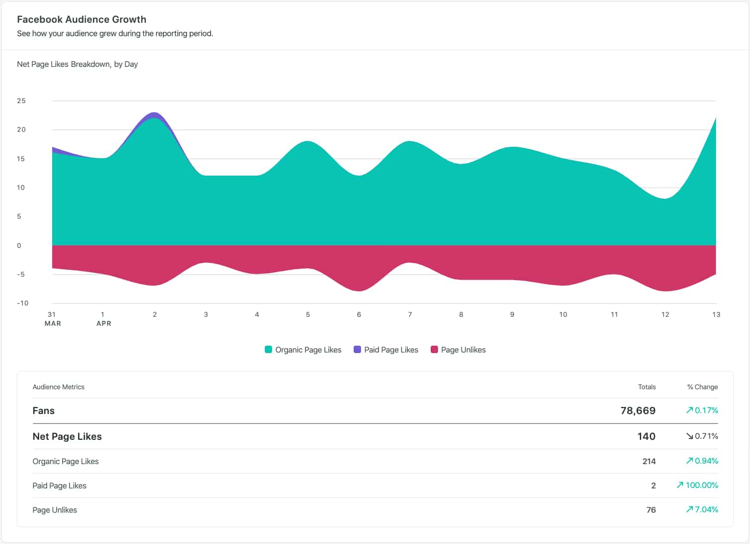 - Net Page Likes: See the true growth of your audience by factoring in both likes and unlikes.