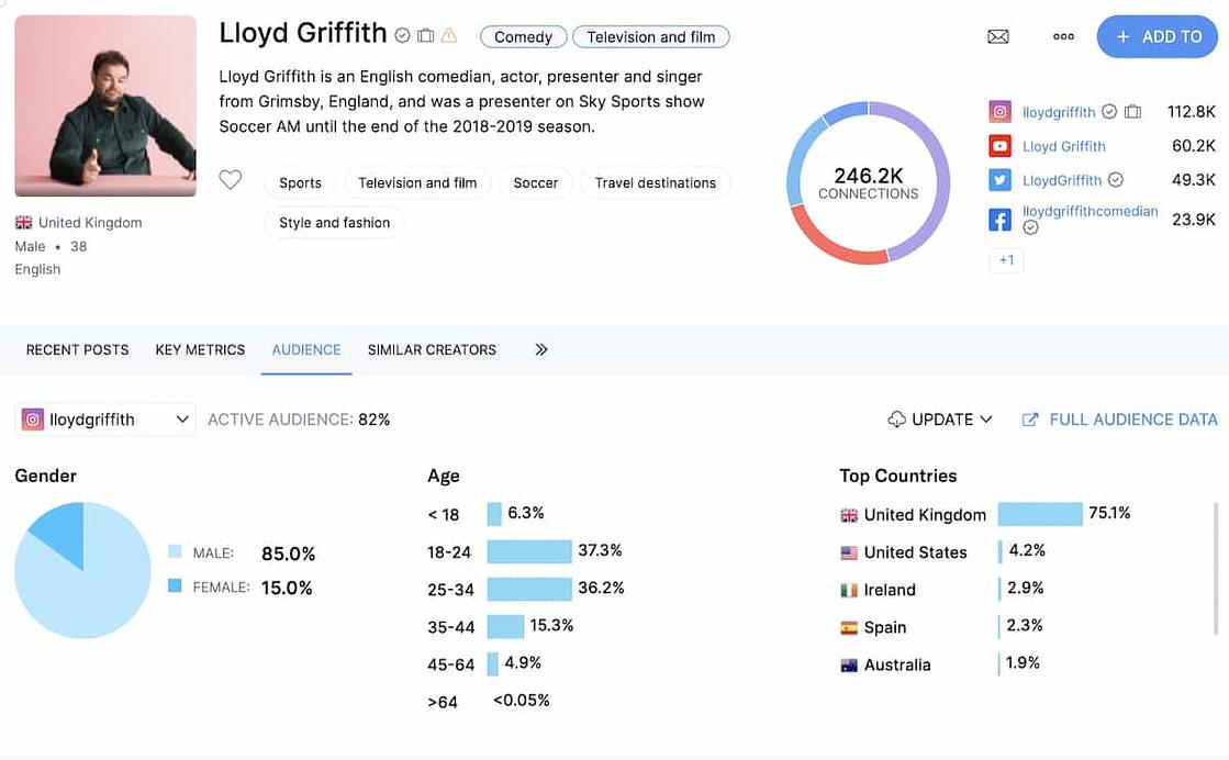CreatorIQ is an intelligent influencer marketing platform with a bunch of creator identification features. Brands can use its AI-powered system to find recommended influencer profiles, use filters to narrow down their search, compare profiles and analyze performance metrics.