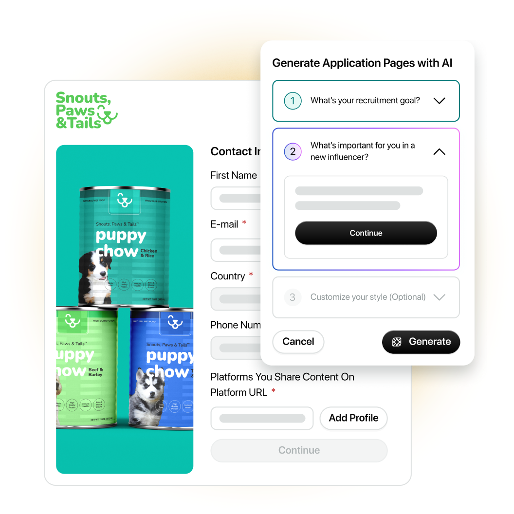 Leverage AI to quickly build and launch a branded application page with Recruit. Capture inbound creator interest and funnel applicants into Creator Lists for fast and easy vetting—so you spend less time searching and more time building.